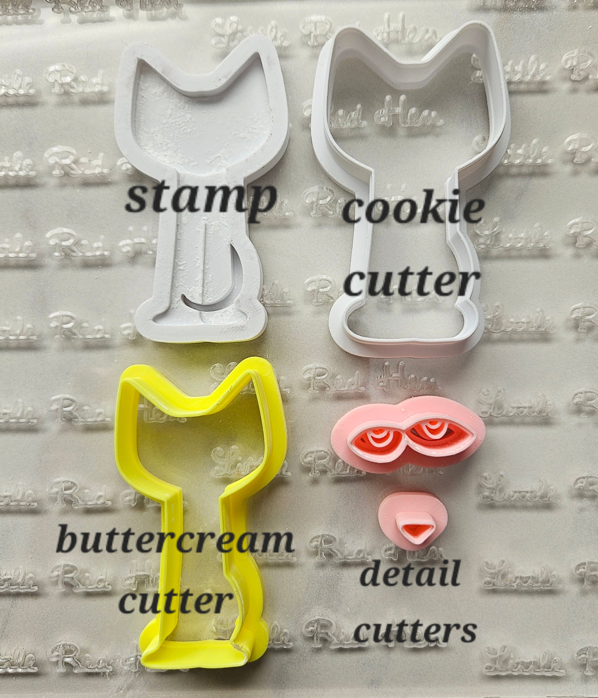 Designs and stamps/cutters are original and made by us in the Little Red Hen workshop, using only USA made food safe filament.